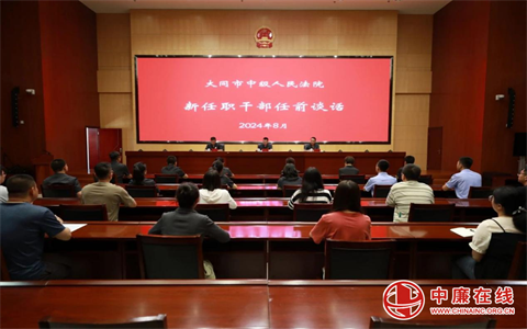 8月19日,山西省大同市中级人民法院召开新任职干部任前谈话会。市中级人民法院党组副书记、常务副院长刘文德出席会议并讲话,市纪委监委驻市法院纪检监察组长、院党组成员石国梁出席会议并进行任前廉政谈话,市中级人民法院党组成员、政治部主任张琨主持会议。
