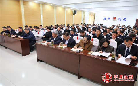3月20日上午,山东省滕州市司法行政工作会议暨司法行政系统党风廉政建设、党建、意识形态、模范机关创建、干部作风攻坚提升工作会议在市司法局六楼会议室召开。市司法局党组书记、局长、四级调研员吕卫民同志出席会议并讲话,市纪委监委派驻第一纪检监察组副组长孙彦飞同志应邀出席会议。市司法局领导班子成员、副科级及以上领导干部,局机关科室负责人,各基层司法所所长、政治指导员和公共法律服务工作站站长,社区矫正片区负责人,各律师事务所主任、党支部书记,各基层法律服务所主任参加会议。