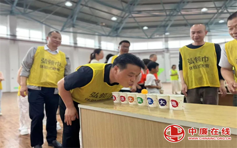 随后开展的“吹廉风,助廉教”廉洁主题团建活动更是以趣味游戏为载体,将廉洁理念融入互动体验中,通过团队协作传递清廉价值观,让廉洁教育更加入脑入心。比如在“守住底线”项目中,参与者需在身体不越过起点线的情况下完成取水任务,生动诠释了“严守纪律红线”的廉洁准则。干部与家属默契配合,在欢声笑语中深化了对“底线不可越”的认识。