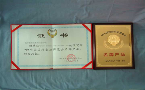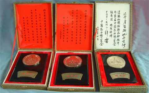 辽盐 9、辽盐 12 水稻品种获 ’99 中国国际农业博览会优质米水稻品种国际名牌产品奖证书、奖牌
