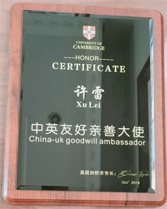 被英国剑桥市长授予“中英友好亲善大使”荣誉称号