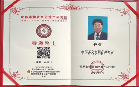 1995年,他放下“金饭碗”走出国家科研机构创办民营科技企业——盘锦北方农业技术开发有限公司(原北方农业技术开发总公司),以培育推广优质、高产、多抗水稻新品种为已任,旨在不断提高辽宁、华北及西北稻区水稻产量,其目的是为农民增产增收服务,人们又称他是“下海歌手”。在走过多年的育种历程中,他经历了政治风云的变幻,改革大潮的磨砺,促成了他“歌手”地位几经变化,但歌唱的主旋律始终没有变,那就是始终如一的为国家、为人民培育优质、高产、多抗、适种区域广的水稻新品种。与土地打交道,是十分辛苦的。他从事水旱稻育种研究50余年来,已经记不清楚自己吃了多少苦,流了多少汗,付出了多少艰辛和坎坷,他几十年如一日从未休过节假日和星期天。为了选出耐寒、耐盐碱多抗的水稻新品种,他42个年头没休过国庆节,从10月1日开始选种,一直选到下苦霜为止。他75岁高龄疾病缠身,2022年在沈阳中国医大二院胆囊切除手术后就从沈阳返回育种基地进行工作。2023年10月份患肺癌在北京医院做肺部切除手术,仅仅休息一周时间,上班进行育种方面的研究。2024年春季水稻育苗、插秧季节仍然奋战在春耕育种科研第一线。笔者看到许雷专家憔悴蹒跚的步伐心如刀割,他哪里是在工作?分明是在用生命做科研,用生命的分秒必争做赌注………别说他从来没有去国内外景区旅游过,三年疫情公司经济更是雪上加霜,经济低迷效益只是寥寥无几,但他仍然很开心很快乐。他觉得,能够把自己全部的爱和热情都奉献给他那热爱的育种田、科研田这个事业,他这辈子就值,同时也是他人生中的最大快乐。