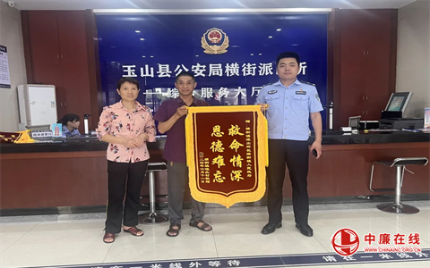 6月19日下午,玉山县横街镇碓头村少年黄李锋的家长将“尽心尽责,为民服务”和“救命情深,恩德难忘”两面锦旗分别送到江西省上饶市玉山县横街镇人民政府和横街镇派出所,以表达对横街镇干部及派出所民警挺身而出,营救被困少年黄李锋的感谢之情。